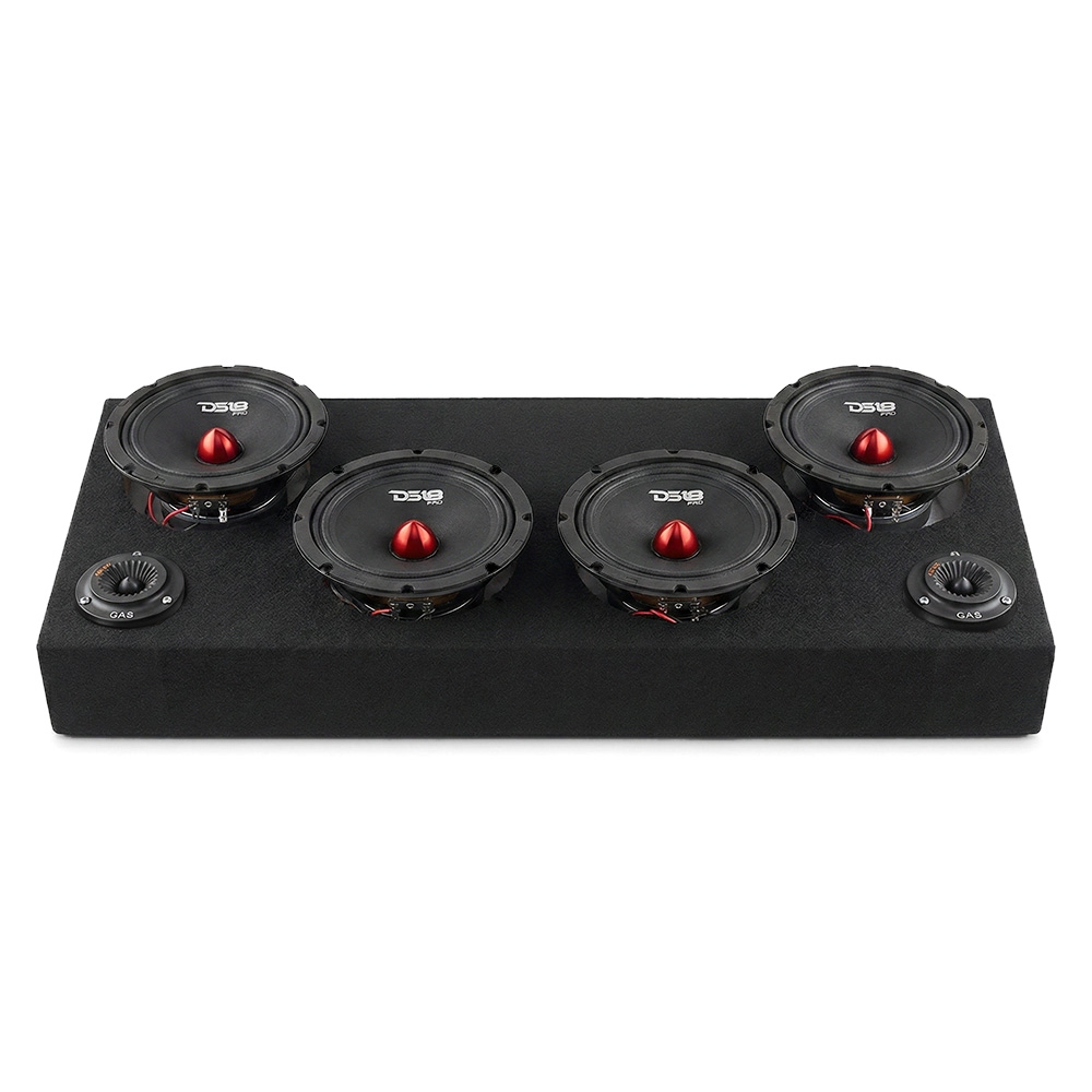 Gi bilen din en skikkelig lydoppgradering med dette pakken som kombinerer fire DS18 PRO-GM8B 8-tommers midbass i en smart designet Auto-Connect VE482SPL "raggarplanke" med kraftige MAD PT2-254 horndiskanter. Et oppsett som leverer skarp mellomtonegjengivelse og krystallklare topper, perfekt for deg som vil ha både trykk og klarhet uten å kompromisse bilens interiør.