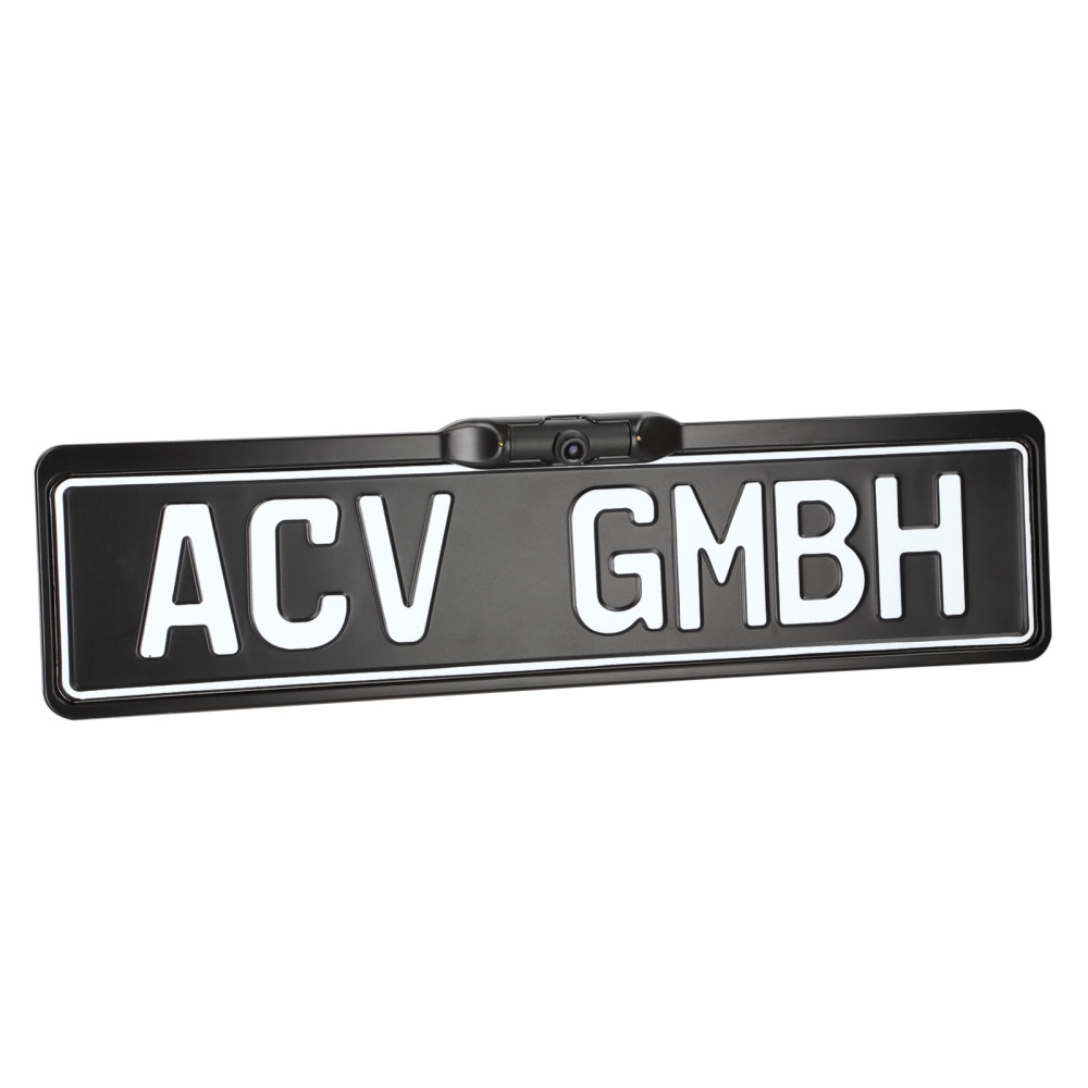 ACV 771000-6040 er en universell monteringsram for bakovervendte kameraer, designet for å passe EU-registreringsskilt.