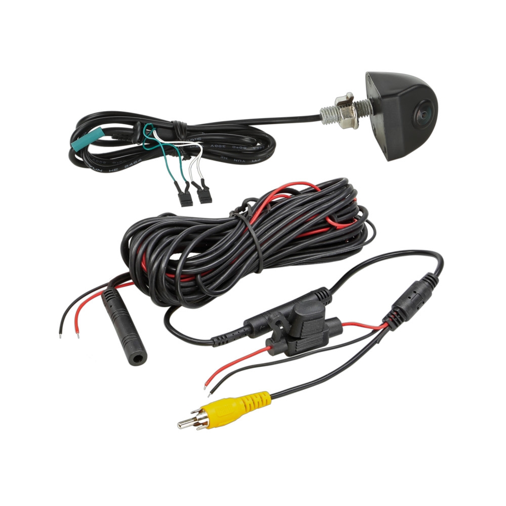 For installasjon følger det med en plastkile for ryggekamera med 5° helning, samt flere tilbehør for å koble kameraet til ulike grensesnitt og strømkilder.