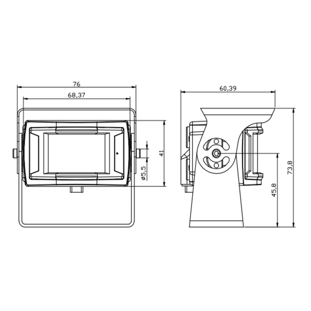 Kameraets mål: L / B / H - 76 mm / 60,39 mm / 73,8 mm