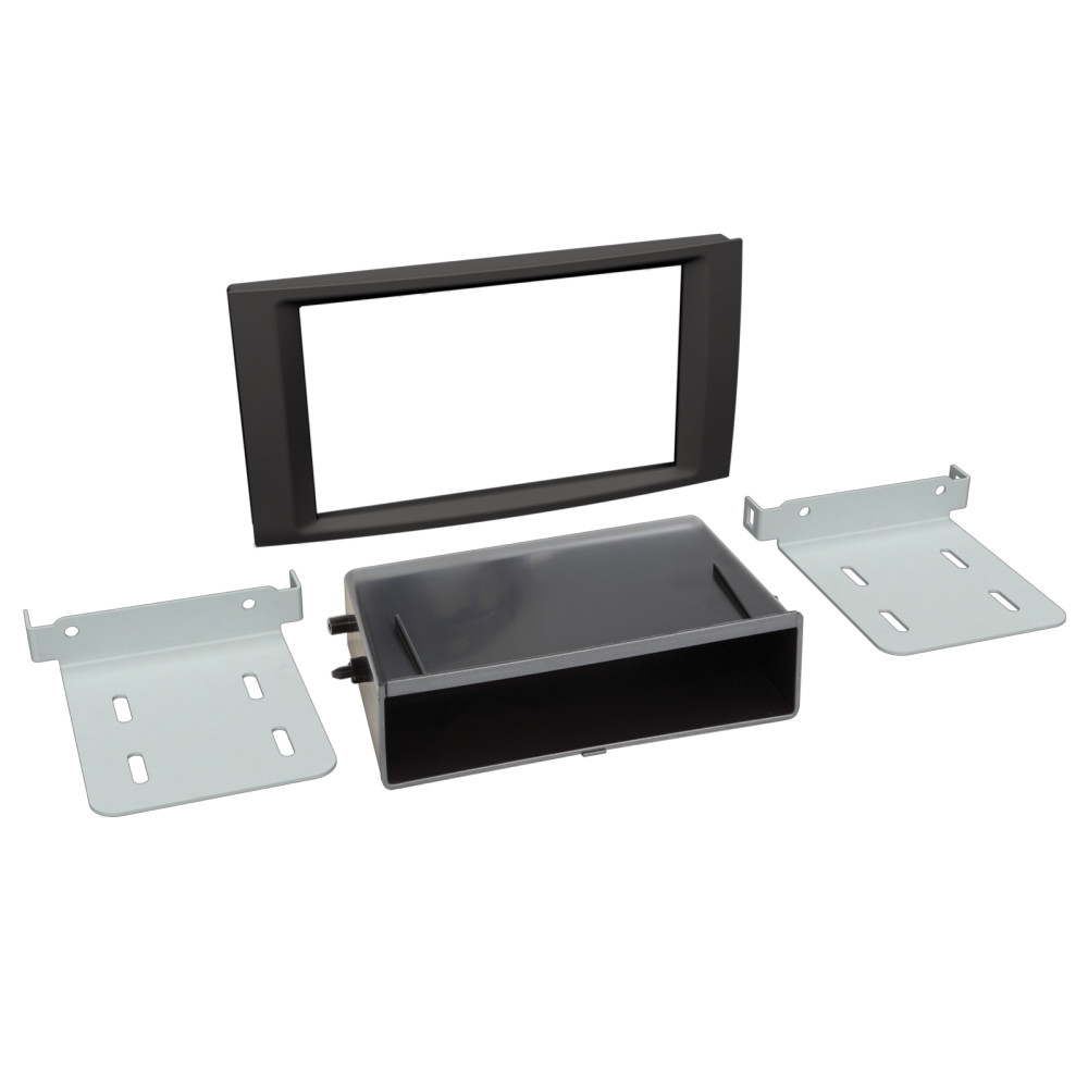ACV 611320-27-2 er en 2-DIN monteringsram med oppbevaringsrom og HU-kontaktsett for VW T5 (2003-2015) og Touareg (2003-2010) med støtte for rattkontroll.