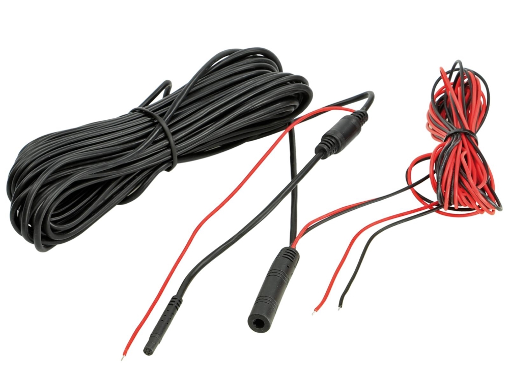 Denne kabelen muliggjør enkel installasjon og tilkobling av kameraet til bilens system. Den røde strømkabelen kobles til ryggelyset for å aktivere kameraet når bilen rygger, mens den svarte jordkabelen kobles direkte til bilens karosseri for å sikre en stabil jordtilkobling. Kabelens lengde på 15 meter gir fleksibilitet ved installasjon og gjør det mulig å plassere kameraet på ønsket sted.