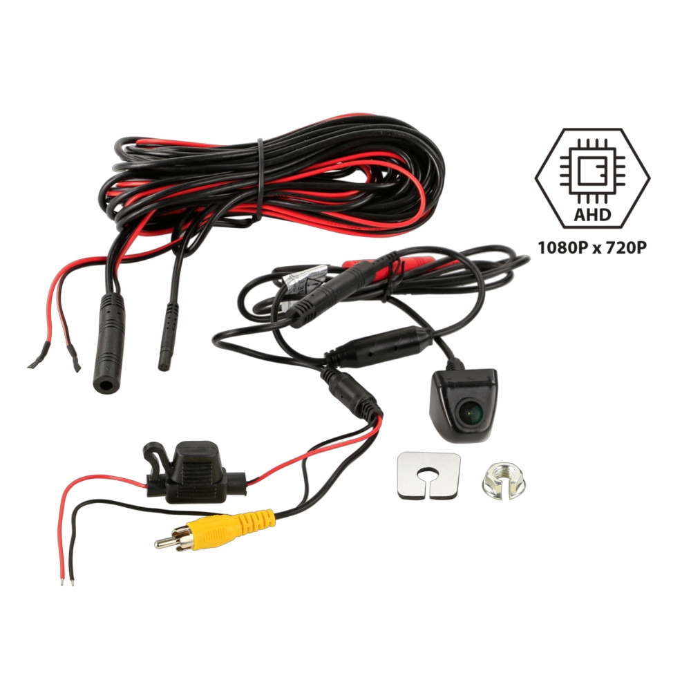Produktet er designet for å tåle tøffe miljøer og har en driftssikkerhet som gjør den ideell for bruk i kjøretøy. Før installasjon anbefales det å kontrollere kameravinkelen og justeringen på installasjonsstedet med en testmonitor. Kameraet har en driftsspenning på +3V og kan kobles direkte til +12V eller +24V uten behov for en spenningsomformer. Det er viktig å merke seg at en tilkobling med +3V er inkludert i leveransen, og at skader på kameraet kan oppstå hvis denne tilkoblingen ikke følges. Tilkoblingene er som følger: - Rød: +12V / +24V (laststabilisert og sikret) - Svart: Karossens direktejord/GND - RCA (gul): Video tilkobling Kameras spesifikasjoner inkluderer: - Design: Plast - Farge: Svart - Bilde sensor: 1/2,8" AHD - TV-system: NTSC - Linse: F/0.03 Lux - Oppløsning: TV-linjer - Synsvinkel: Horisontal 120°, Vertikal 120° +5° - IP-klassifisering: IP68 - Terminal: 4 Pin ACV-systemkontakt (hann) Ø5,2 mm - Driftstemperatur: -20°C til 70°C - Lagringstemperatur: -40°C til 80°C - Mål: L/B/H: 25,7mm / 28mm / 23,5mm Kameraet leveres med en 1 meters pigtail og inkluderer også en 4 Pin ACV-systemkontakt (hun) Ø10mm samt en spenningsomformer for +3V. Det finnes også forlengelseskabler tilgjengelig i forskjellige lengder for å lette installasjonen.