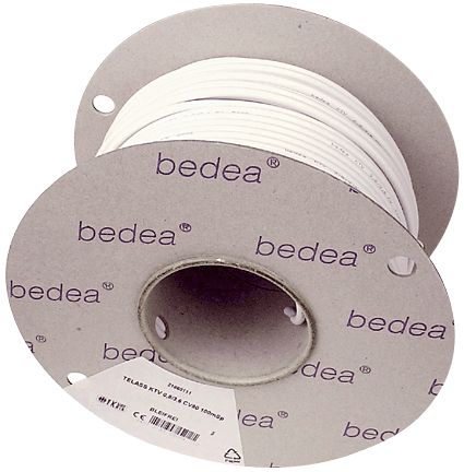 BEDEA Koaxialkabel. 75 Ohm. KTV 0,8/3,6CV. VIT. Grovlek 6mm.