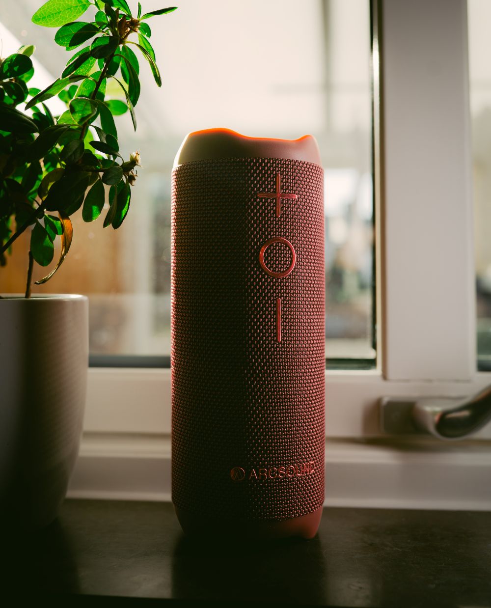 Arcsound EDGE Ruby Red er høyttaleren som gir litt ekstra puls til hverdagen og festen. Når du står der med vennene og grillen er i gang, solen begynner å gå ned og du føler at noe mangler. Da er det EDGE som fyller tomrommet! Med en kraftig lyd, dyp bass og LED-belysning som følger rytmen blir følelsen direkte mer levende. Legg til Stadium Sound, og plutselig føles musikken større og mer intens. Nesten som om du var midt i folkemengden!
