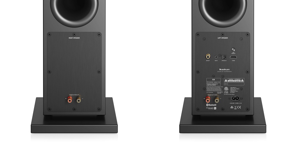 Stativ modellen A26 og gulvhøyttaleren A36 knekker sine forgjengere ganske så realt. De har utrustet modellene med forbedrede elementer, der bl.a basselementet har et nytt oppheng for økt slaglengde. De bruker fortsatt et klasse D-forsterker system for minimal varmeutvikling, men det er drøyt 50% sterkere enn forgjengerne. Kabinettets dimensjoner er litt større for økt kassevolum, og designmessig har de fått en nydelig stoff grill med Audio Pro’s logo på. Både A26 og A36 er ekte stereo høytalere, altså man har to fysiske kabinett. Fordelen med dette - sammenlignet med single-stereohøyttalere - er at lydbildet blir bredere og dermed åpner seg siden mer lyd flyter ut i hele rommet. Den innebygde forsterkeren sitter i den venstre høyttaleren, som deretter er koblet sammen med den høyre i en redelig høyttalerkabel. så tenk at den aktive siden skal på venstre side av TVen.