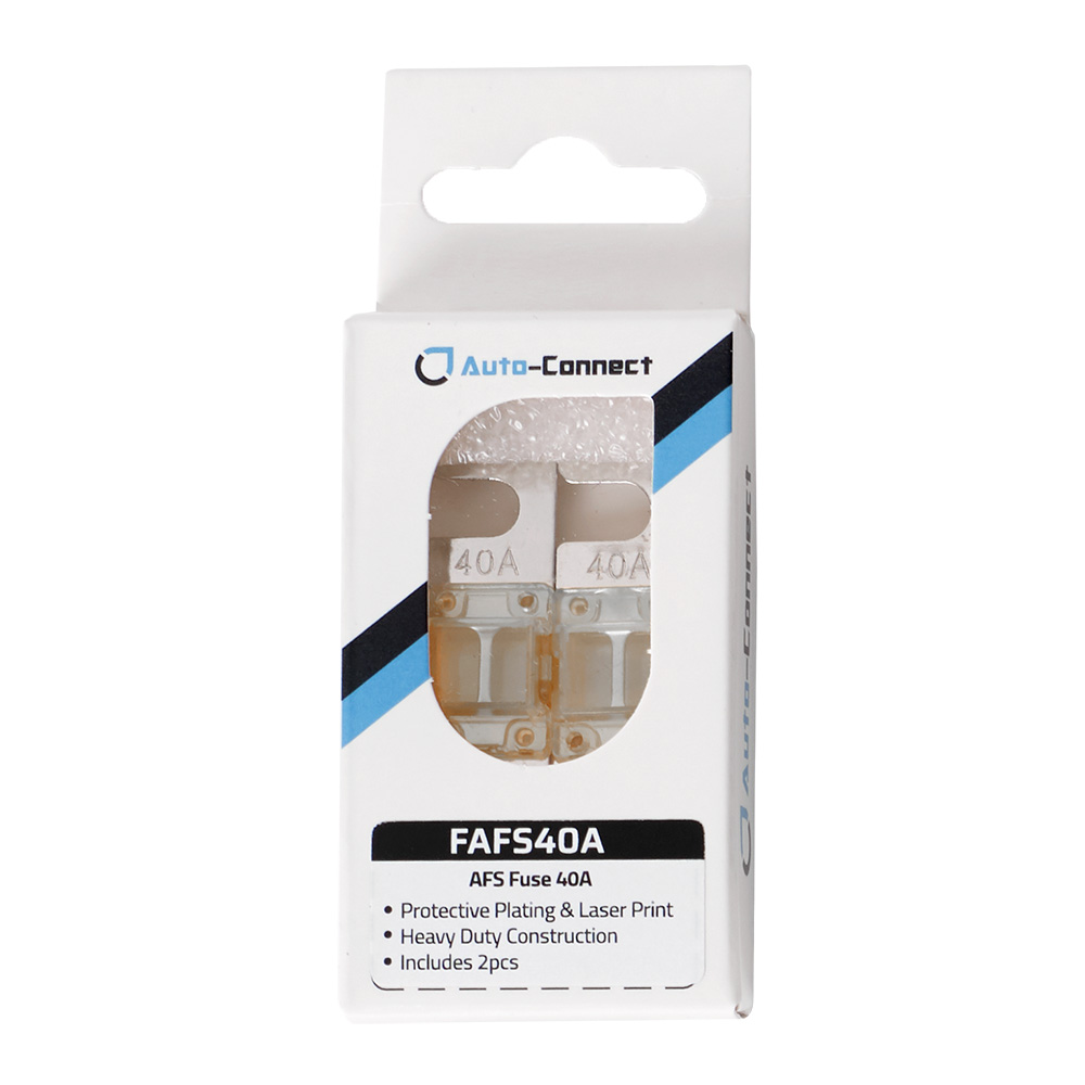 Auto-Connect FAFS40A er en 2-pakning Mini-ANL / AFS-sikringer med 40A merkestrøm, beregnet for 12V-installasjoner i bil, MC eller maritime systemer. En kompakt og robust sikringstype som gir pålitelig overstrømsbeskyttelse for sluttforsterkere og annen kjøretøymontert elektronikk.