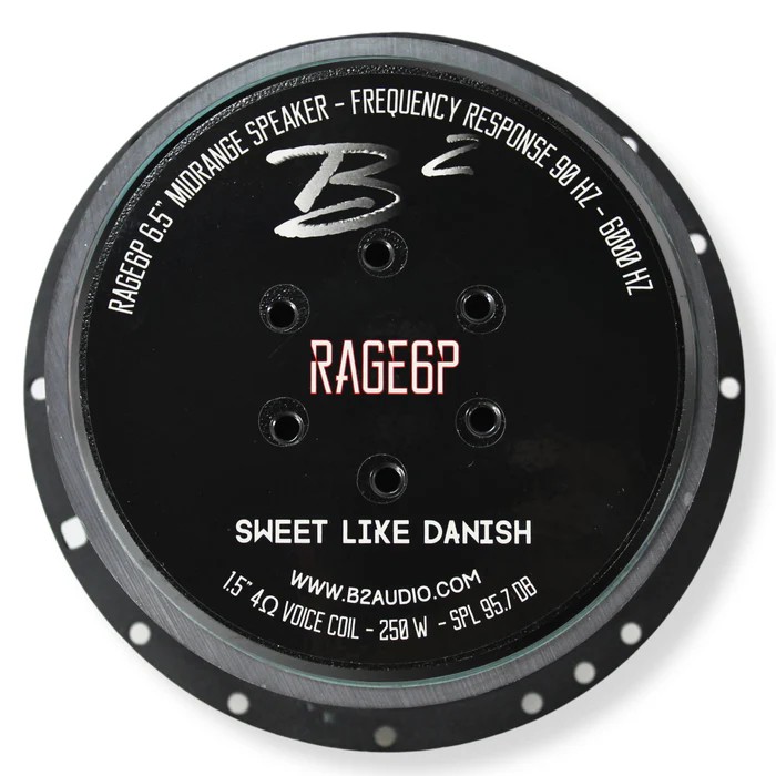 B² Audio RAGE 6P V3 er et par 6,5-tommers midbass/mellomtone bygget for høy output og klar gjengivelse, utviklet for deg som vil ha trykk, nærvær og kontroll i mellomtonen. Med høy følsomhet og robust konstruksjon leverer de både volum og detalj, selv i krevende installasjoner.