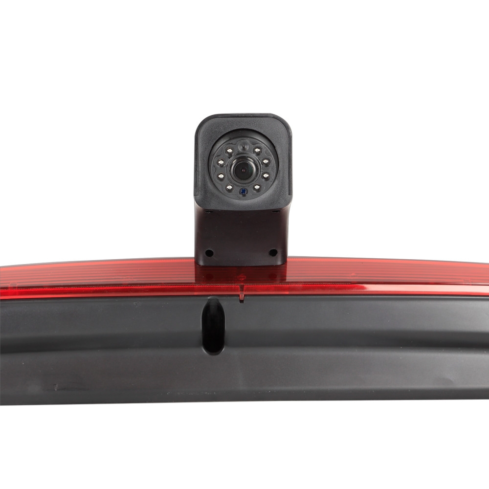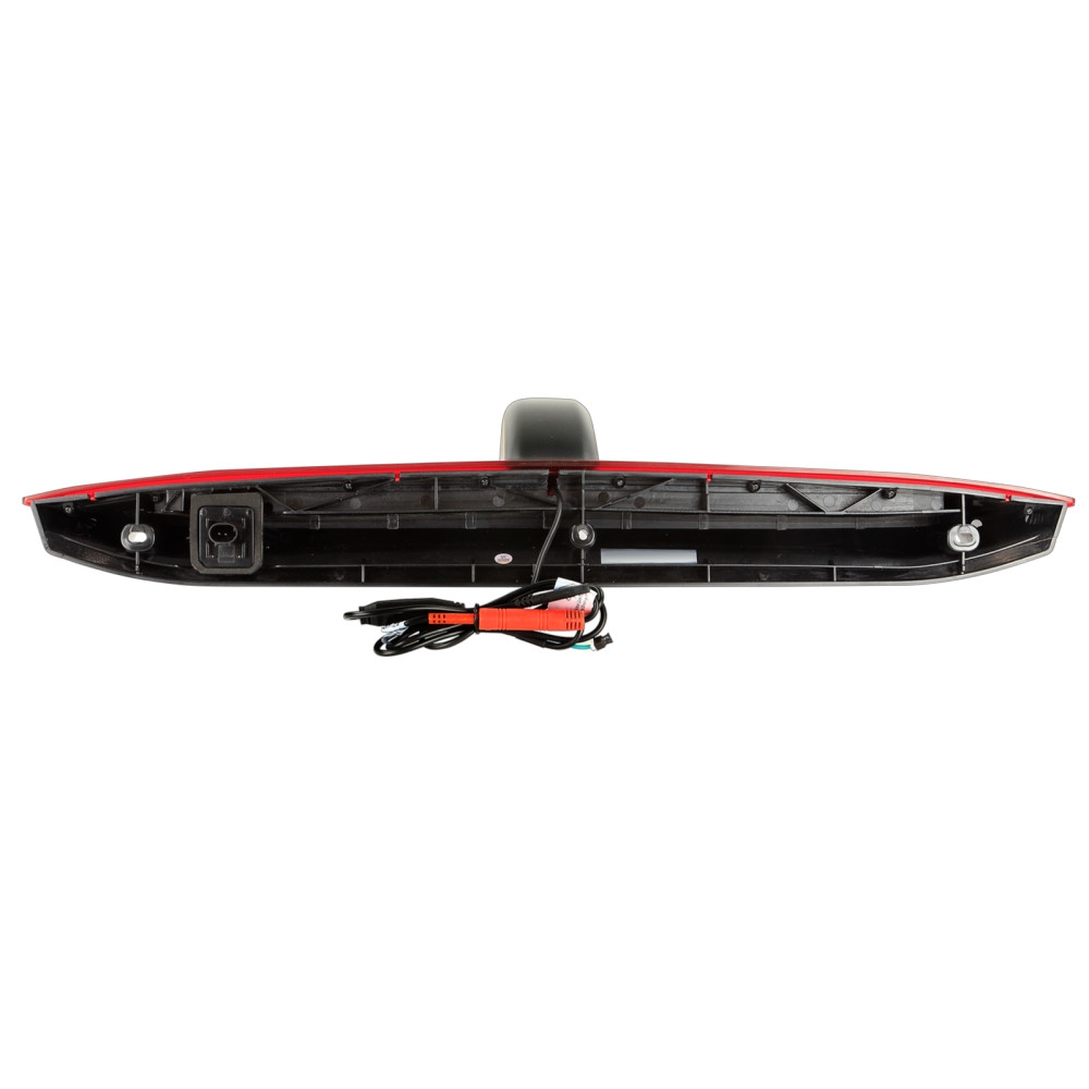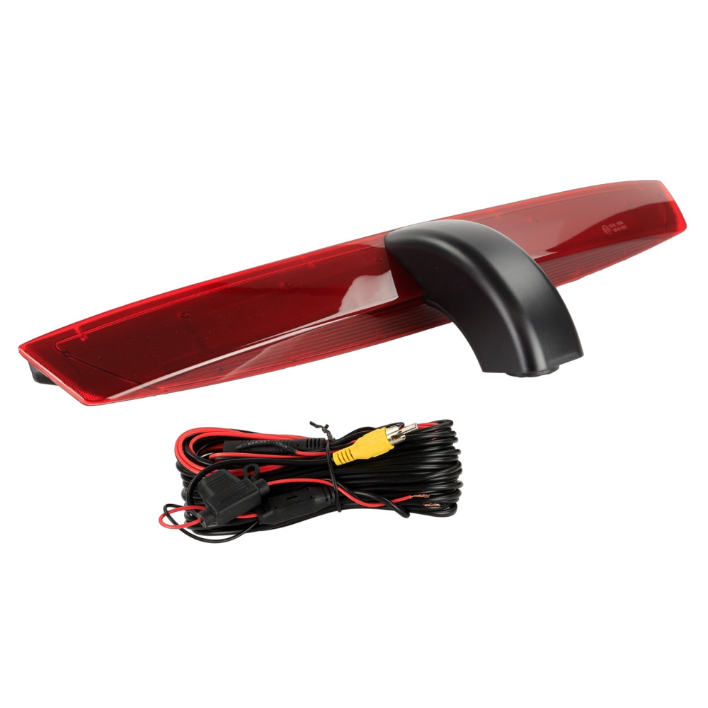 Dette kameraet har en plastdesign og finnes i svart og rød farge. Retningslinjer kan aktiveres eller deaktiveres via en jumper, og synsvinkelen kan justeres for å passe ulike installasjonsbehov. Kameraet har en 1/3" CMOS bildesensor og bruker NTSC TV-system. Med effektive piksler på 976 x 592 og en oppløsning på 600 TV-linjer, gir det et klart og tydelig bilde. Linse vinkelen er diagonalt 160° med en horisontal synsvinkel på 115° og vertikal synsvinkel på 75°. Kameraet er konstruert for å fungere i temperaturer mellom -30°C og 75°C og kan lagres i temperaturer mellom -40°C og 80°C. Målene er tilpasset for å passe det OEM-bremselyset som det erstatter. Koblingsanvisninger: - Rød kabel: +12V strømforsyning. - Svart kabel: direkte jordforbindelse til bilens karosseri. - Gul RCA-kabel: video tilkobling. - Grønn jumper: aktivere/deaktivere retningslinjer. Det er viktig å ved installasjon av ryggekamera sørge for at det tredje bremselyset er korrekt tilkoblet for å unngå feilmeldinger. Hvis det oppstår en feil i informasjonsdisplayet, kan OEM-lampen kobles parallelt, eller en belastningsmotstand (10k Ohm, 5 Watt min) kan brukes for å simulere OEM-lampen.