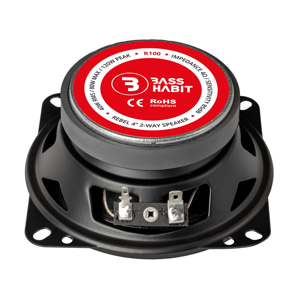 Bass Habit Rebel R100 er et par 4 tommer store koaksialhøyttalere du trenger hvis du søker et produkt som leverer virkelig høy ytelse til en pris som får deg til å smile. Med en effektkapasitet på 40W RMS tilbyr R100 et klart og kraftfullt lydbilde som gjør hver biltur til en opplevelse. Som en del av den populære Rebel-serien er R100 designet for å matche perfekt med andre komponenter i samme serie.