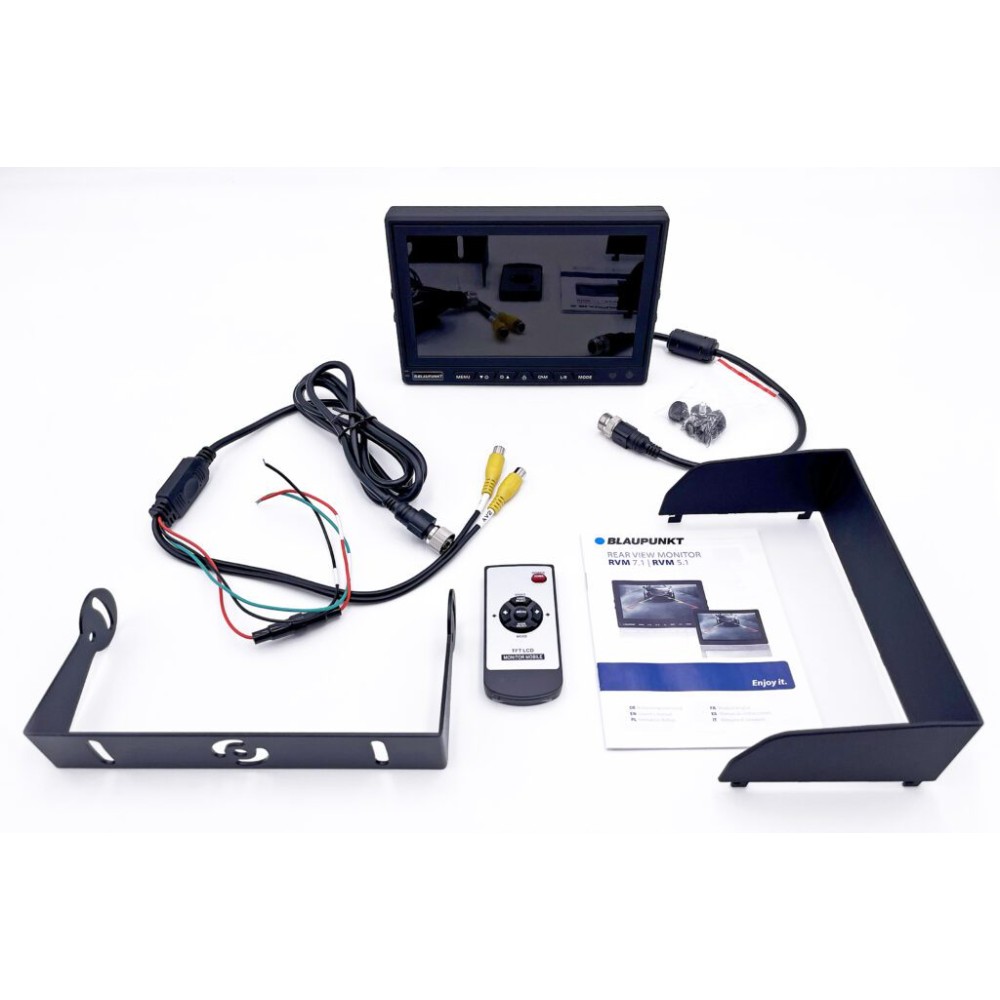 Blaupunkt RVM 7.1 er en universal 7-tommers monitor designet for visning av opptil to ryggekameraer i personbil, varebil, lastebil eller arbeidskjøretøy. Skjermen tilbyr høy oppløsning, god lysstyrke og stabilt bilde selv i krevende miljøer, noe som gjør den til et trygt hjelpemiddel ved rygging og manøvrering. Med støtte for både 12 V og 24 V passer den i et bredt spekter av kjøretøytyper.