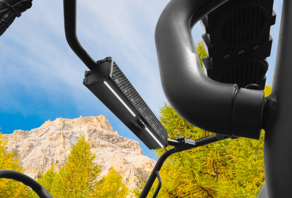 Ved hjelp av medfølgende fester blir det enkelt å montere opp dette på f.eks UTVens bur for å kunne strømme musikk mens du kjører! Koble deg enkelt til via bluetooth- eller AUX og samtidig legg telefonen til lading via USB. Denne soundbaren har en maks. effekt på 500W med en innebygget klasse D forsterker og også en elegant LED-list på høyttaleren.