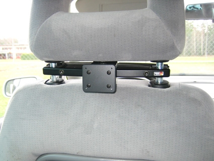 Festet plasseres på forsetets nakkestøtte. Du kan montere det selv på et par minutter, monteringsanvisning medfølger. Festets monteringsplate har forborede hull som gjør monteringen av en holder enklere.