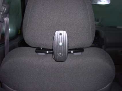 1. Fjern nakkestøtten. Tre på nakkestøttefestet på stengene til nakkestøtten. Monteringsplaten skal være på nakkestøttens bakside. Sett nakkestøtten tilbake.