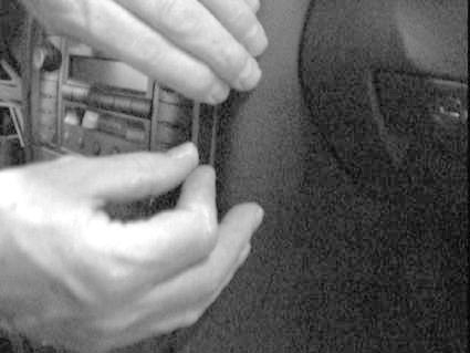 Press inn den medfølgende springåpneren i sprekken mellom kontrollpanelet og den omliggende rammen. Fjern tapen på monteringsdelen til ProClip-holderen.
