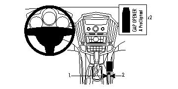Den smale delen av bildet: Press inn en av de medfølgende spalteåpnerne i spalten mellom midtkonsollens kant og sideveggens kant for å utvide spalten.