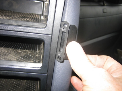 1. Fjern beskyttelsesplasten på dobbeltsidig tape på Del 1. Press den vinklete delen inn i sprekken mellom kontrollpanelet og den omliggende rammen.
