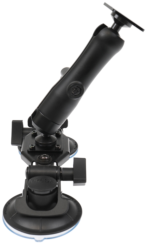 Dette sugekoppfestet med doble sugekopper og PM-feste gir en sterk montering mot de fleste flate overflater. PM-festet kan enkelt stilles inn i alle vinkler og posisjoner takket være kuleledd som kan vinkles 210° og roteres 360°. AMPS-hull, kompatibel med alle Brodit-holdere med kuleledd. Farge: svart. Stang laget av aluminium, vingemuttre laget av plast. Tåler vekt opp til 3 kg.