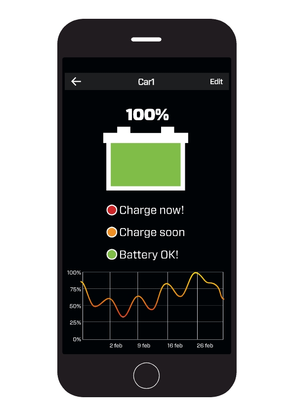 Battery Sense kan brukes på alle 12 V-batterier og er enkel å montere og bruke. Du kan også ha flere slike moduler tilkoblet på en rekke ulike kjøretøy og alle kan synkronisere mot din telefon slik at du kan overvåke, f.eks, bobil, MC, firehjuling eller andre kjøretøy med 12 V-blysyrebatterier på minst 4,5 Ah.