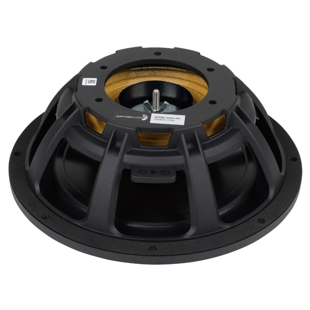 Dayton Audio SS10-PR er en 10-tommers slavbass i Signature Series, bygget for å gi mer dypbass fra kompakte kasser uten å ta plass med lange porter. Den er laget som partner til SS10-22 og deler samme uttrykk med støpt aluminiumskurv, anodisert aluminiumskone og gummioppheng. Her finnes også Dayton Audios SMS-løsning, der den ekstra massen plasseres mellom spider og oppheng for å gi en stabil og symmetrisk bevegelse selv når utslagene blir store.