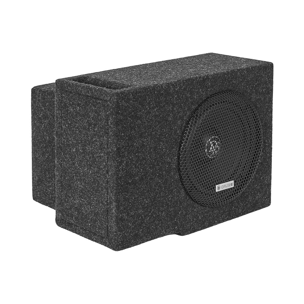 Kassen er formbygget for å forsvinne i bilen, med skjult plassering og en finish som føles gjennomarbeidet. Stabilt kabinett, tydelig terminalplassering og beskyttelsesgitter i metall gjør installasjonen robust og klar for langvarig bruk. Bassreflekskonstruksjonen med spalteport er valgt for sin effektivitet i liten volum og sin måte å beholde kontrollen når du øker volumet. I praksis betyr det en bunn som føles tett, smidig og lett å integrere med frontsystemet.