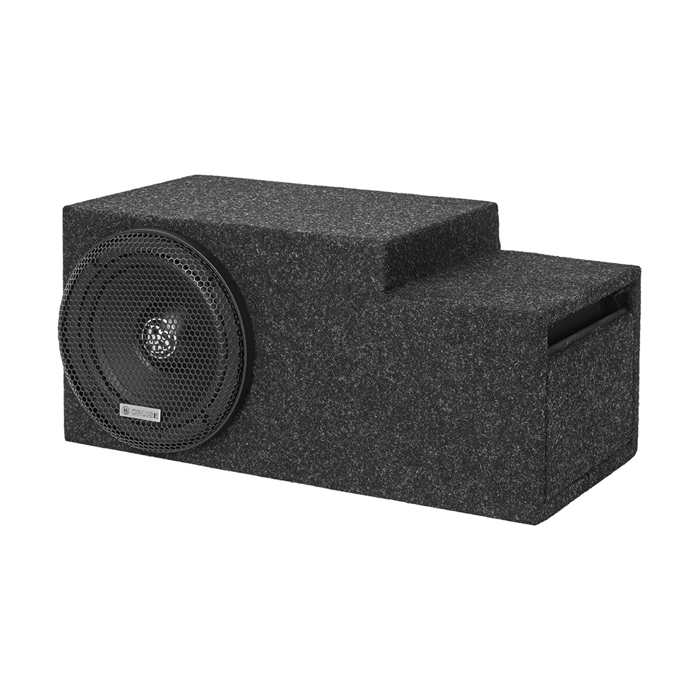 Kassen er formbygget for å forsvinne i bilen, med skjult plassering og en finish som føles gjennomarbeidet. Stødig kabinett, tydelig terminalplassering og beskyttelsesgitter i metall gjør installasjonen robust og klar for langvarig bruk. Bassreflekskonstruksjonen med spalteport er valgt for sin effektivitet i liten volum og sin evne til å beholde kontrollen når du skrur opp volumet. I praksis betyr det en bunn som føles tett, smidig og lett å integrere med frontsystemet.