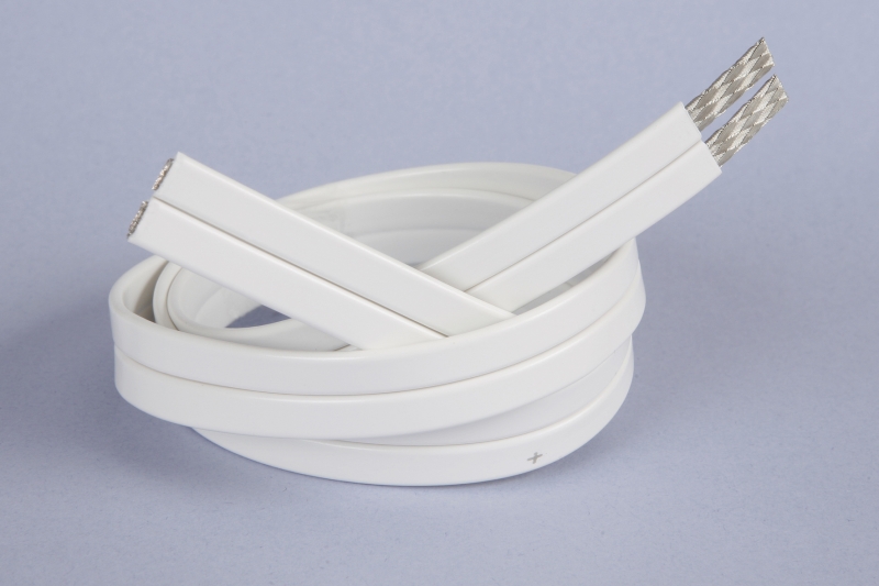 En superplatt kabel, kun 1,8 mm tykk og 11 mm bred, ideell for veggmontering eller å legge under et teppe. På veggen brukes tex en dubbehäftande tape som fester på de fleste underlag.