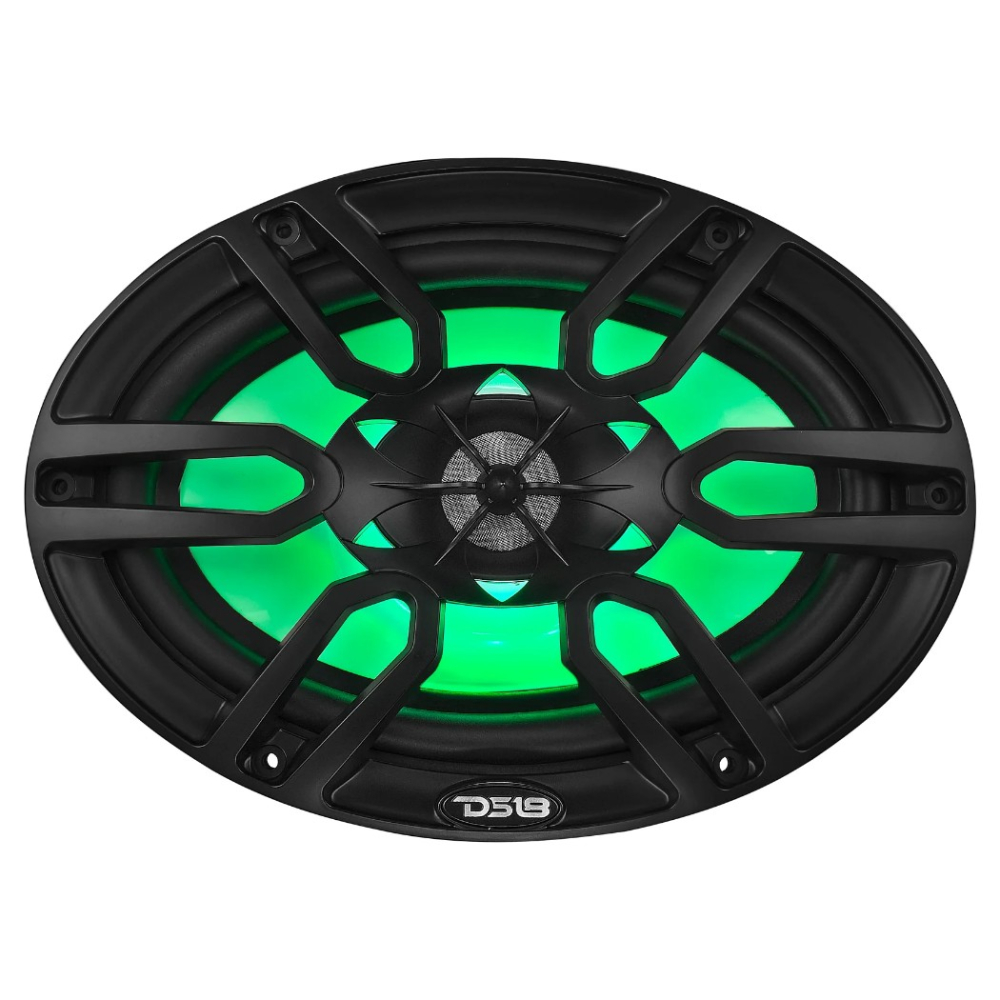 DS18 NXL-69/BK er et par 6x9-tommers koaksialhøyttalere for marint og utendørs bruk, bygget for å levere fyldig lyd i åpne miljøer der vanlige høyttalere ofte kommer til kort. Med 125 W RMS, 4 ohm, IP65-klassifisering og integrert RGB-belysning passer de godt i båt, UTV, ATV og andre bygg der både slitestyrke og et pent design betyr noe. Den svarte finishen gir et diskré og robust inntrykk, samtidig som det medfølgende silikonlokket gir ekstra beskyttelse i utsatte miljøer.