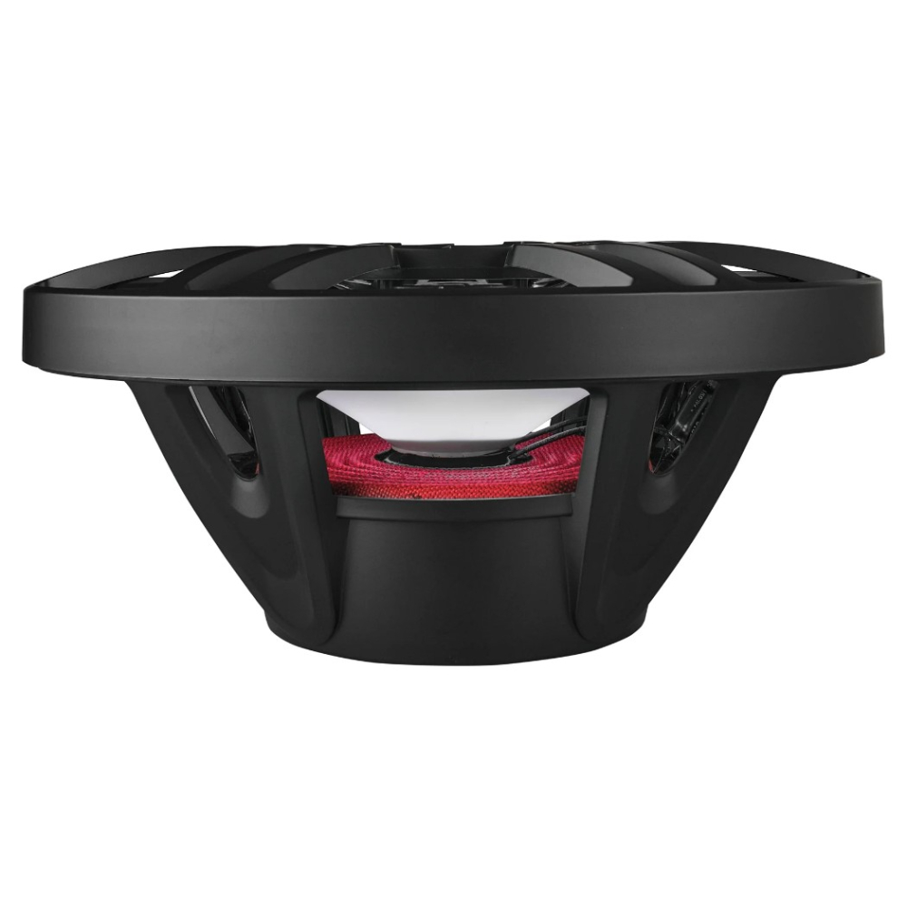 Materialvalgene er tilpasset fukt, sol og tøffere bruk over tid. Kurven er laget i komposittmateriale med UV-beskyttelse, og konstruksjonen er IP65-klassifisert for å tåle vannsprut og utsatte miljøer. Den integrerte RGB-belysningen gjør også at høyttaleren blir en tydelig del av installasjonen, spesielt i båter og showbygger der lyset skal bidra til helhetsinntrykket.