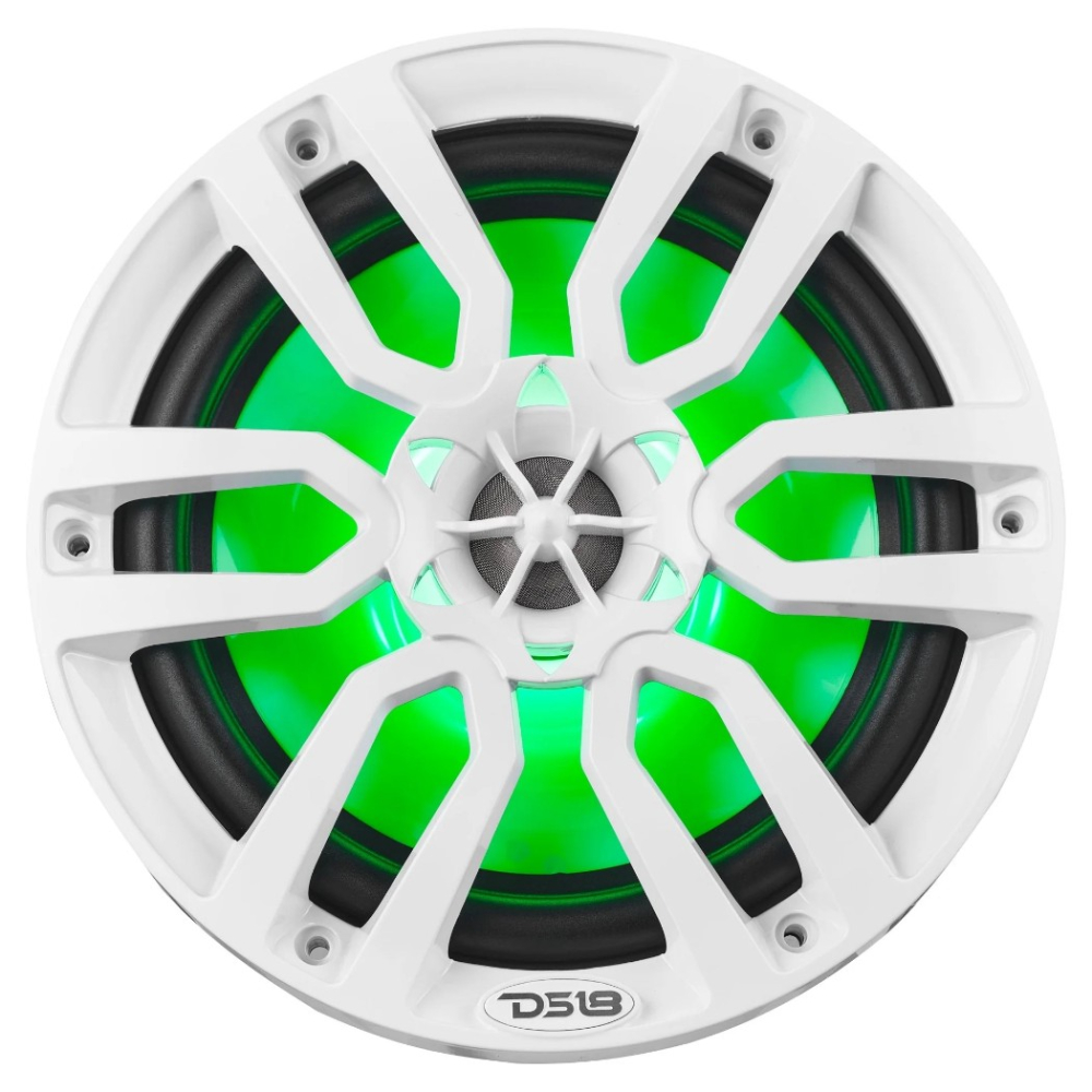 DS18 NXL-8 er et par 8-tommers koaksialhøyttalere for maritim og utendørs bruk, utviklet for å gi en større og klarere lyd i åpne omgivelser. Med 125 W RMS, 4 ohm, IP65-klassifisering og integrert RGB-belysning passer de godt til båter, powersport-kjøretøy og andre installasjoner der høyttaleren må tåle både vær og aktiv bruk. Den hvite finishen gir et rent og marinet uttrykk, og de medfølgende silikondekslene gir et ekstra beskyttelseslag i utsatte miljøer.