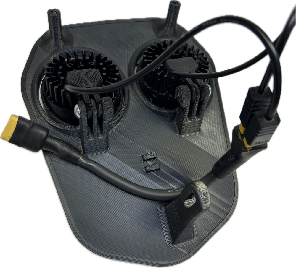 Triumph ljusfäste i 3d print fäste avsett till originalkåpan på Triumph 2024-, med 2st monterade supertunna lätta E406k LED-lampor totalt max 80w förbrukning.