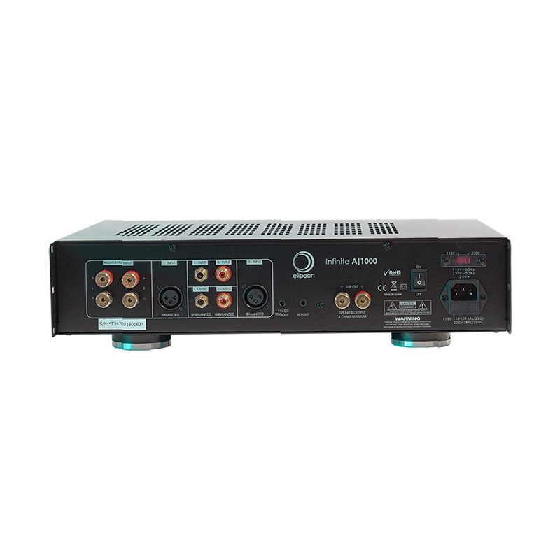 Elipson Infinite A1000 effektforsterker med DSP er en kraftig Class D-mono effektforsterker med innebygd DSP, spesielt utviklet for å drive en eller flere Infinite S12-subwoofere. Med justerbare filtre og EQ-innstillinger gir den presis kontroll over bassgjengivelsen, noe som forbedrer lydopplevelsen i hjemmekino eller lydsystem.