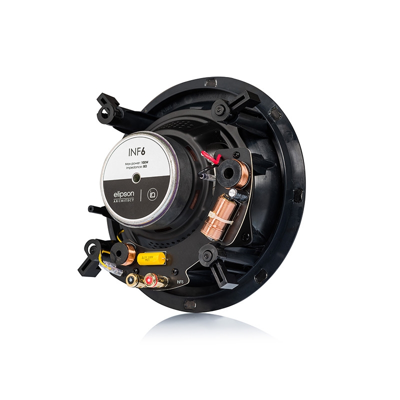 Elipson Infinite IC6 er designet for å gli inn i tak eller vegg med en tynn ramme og hurtigfestesystem som forenkler installasjonen. Den passer godt i større rom og kan brukes for å skape et omsluttende lydlandskap i hjemmekinoen eller for å komplettere et Dolby Atmos-system. Den roterbare diskanten gjør at du kan rette lyden dit du vil for optimal lydspredning.