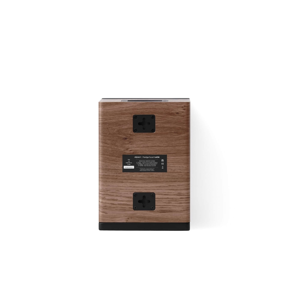 Prestige Facet II 6ATM bygger på Elipsons nye generasjon med forbedrede komponenter for optimal lydtransparent gjengivelse. Det lukkede kabinettet og fasepluggen reduserer forvrengning og gir klarere mellomtonebass. Diskanten beskyttes av en patentert ring som reduserer diffraksjon for renere høyfrekvent lyd. Resultatet er et tydelig og presist lydbilde som fanger Atmos-formatets vertikale dimensjon.