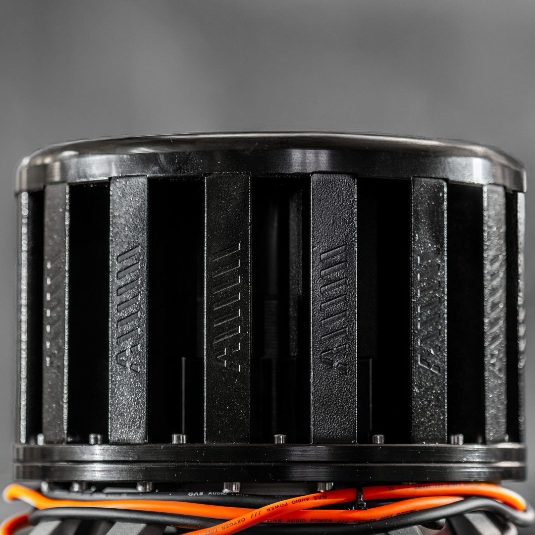 Dette er ikke din nabos basselement. Dette er blant det kuleste vi har hatt æren av å selge. Til membranen har GAS valgt et materiale med krystallinske egenskaper som gir forbedret stivhet og rask respons, noe som øker effektiviteten når membranen settes i bevegelse og minimerer risikoen for uønskede resonanser ved høye lydtrykk. På toppen troner et skreddersydd karbonfiberdammskydd – lett, men utrolig sterkt – som beskytter subwooferens indre og ytterligere stiver opp kammeret. Ved de enorme kreftene som oppstår når membranen arbeider er hver liten komponent avgjørende. Minste feil i geometri eller materialvalg kan bli kostbart i form av uteblitt kontroll.