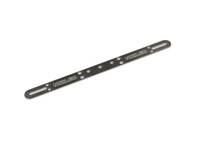 Aluminiums hjelm holder for en eller to lamper. 3 stk. 6mm hull opptatt for lamper. 2 mm tykk. Mål 380x30mm.