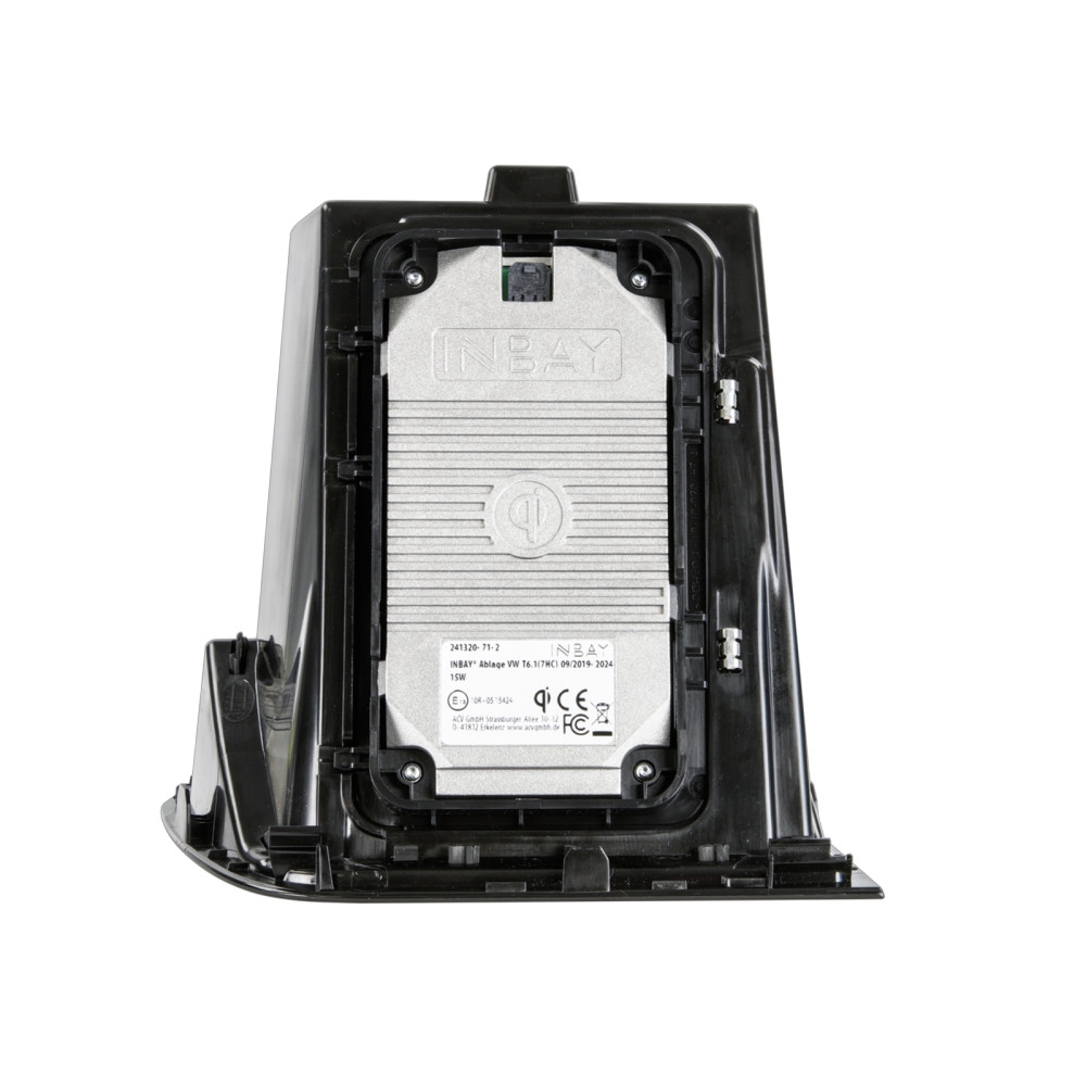 ACV 241320-71-2 er en INBAY® lomme for Volkswagen T6.1 (7HC) produsert mellom 09/2019 og 2024 for venstrestyrte kjøretøy. Dette produktet muliggjør trådløs induktiv lading av smarttelefoner med en effekt på 15 Watt. INBAY®-produkter er kompatible med Qi-standarden for trådløs lading, noe som gjør at de fungerer med alle smarttelefoner som er sertifisert av Wireless Power Consortium.