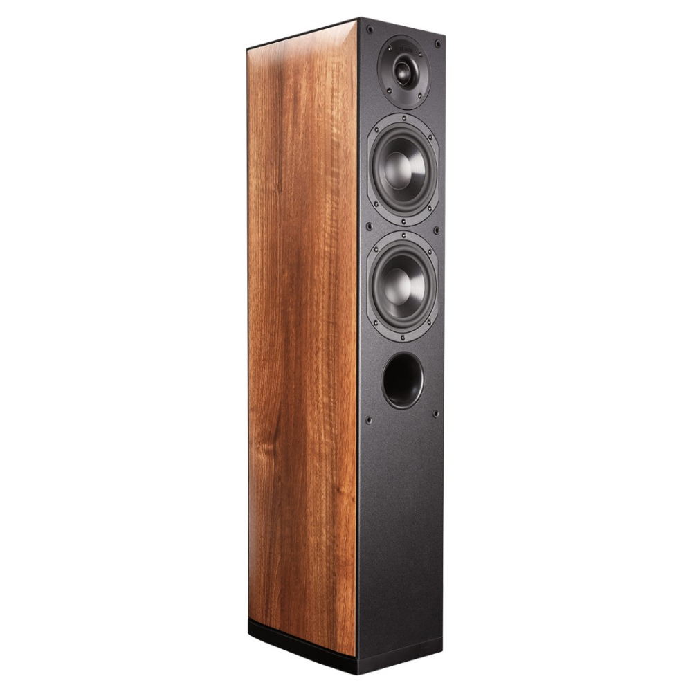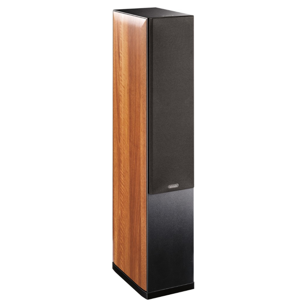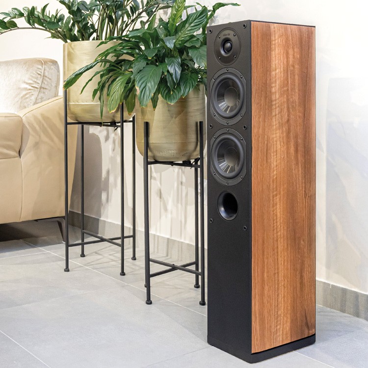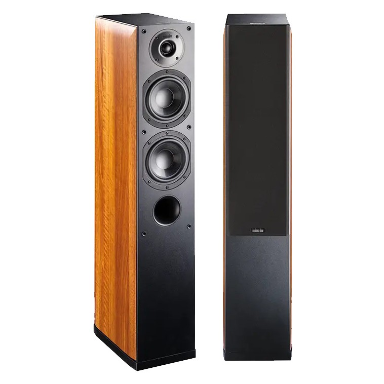 "At a very fair price, Indiana Line offers the Nota, a sophisticated, mature-sounding floorstanding speaker that delivers impressive sound with any type of music. Its slim cabinet is further enhanced by elegant wood-effect side panels."