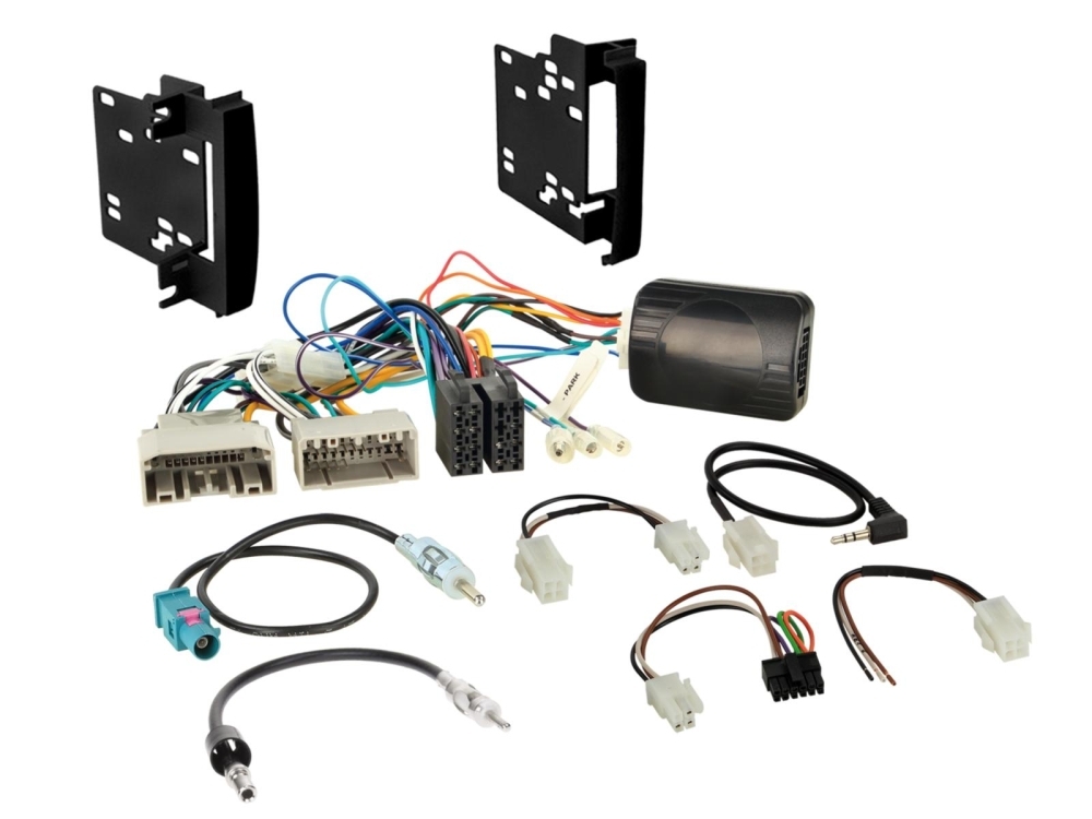 - Inneholder alle nødvendige adaptere og grensesnitt for installasjon av ettermarkeds HU.