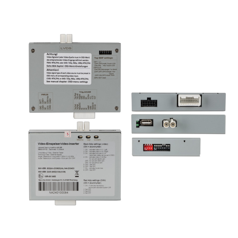 Dette produktet er designet for å integrere kameraer i kjøretøyets eksisterende system, noe som gjør det mulig å se hva som er bak eller foran bilen på skjermen. Den er spesielt tilpasset for å fungere med Mercedes-biler som har Comand Online-systemet, noe som gjør installasjonen smidig og enkel. Ved å bruke dette grensesnittet kan du øke sikkerheten og bekvemmeligheten ved kjøring.