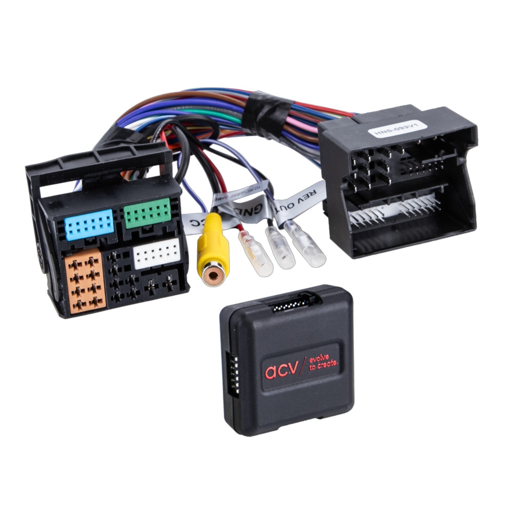 ACV 771324-1038-1 er et grensesnitt for bakovervendt kamera som muliggjør tilkobling av et bakovervendt kamera til et fabrikkmontert infotainmentsystem i Seat, Skoda og VW med MIB/MIB2.