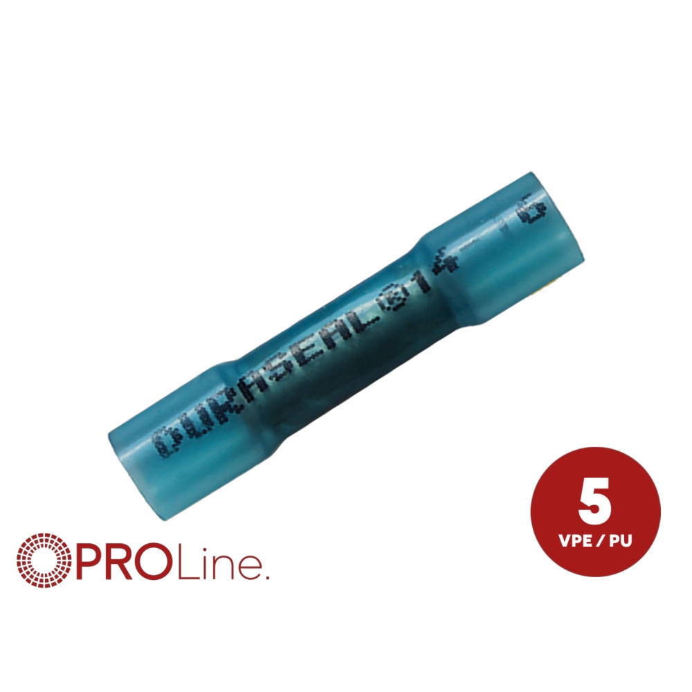ACV 347246-1-5-p er et sett med 5 loddehylser med varmeskrump i blå farge. Disse hylsene er designet for å sikre en sterk og sikker elektrisk tilkobling mellom kabler.