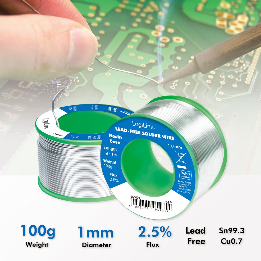 LogiLink Blyfritt Loddetinn er et miljøvennlig alternativ for alle dine loddeoppgaver, enten det er elektronikkprosjekter, finmekanikk eller hobbybruk. Den blyfrie sammensetningen av tinn sikrer en ren og holdbar lodding.