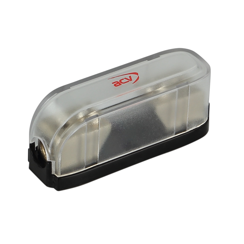 ACV 30.3901-01 er en mini-ANL sikringsholder med sølvfarge, designet for å gi en sikker og pålitelig tilkobling i ditt bilstereosystem.