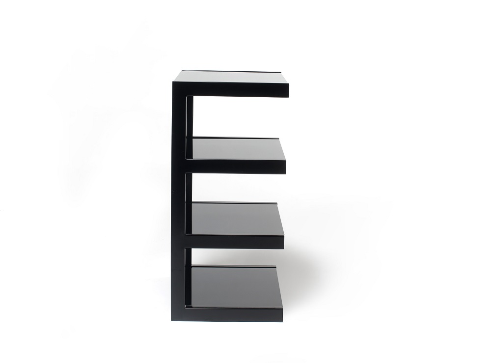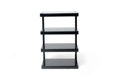 En kul stereo benk utformet med fire hyller for stereoanlegg.