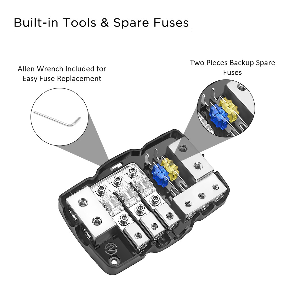 - Mini-ANL-sikringer følger med (60A, 80A, 100A)