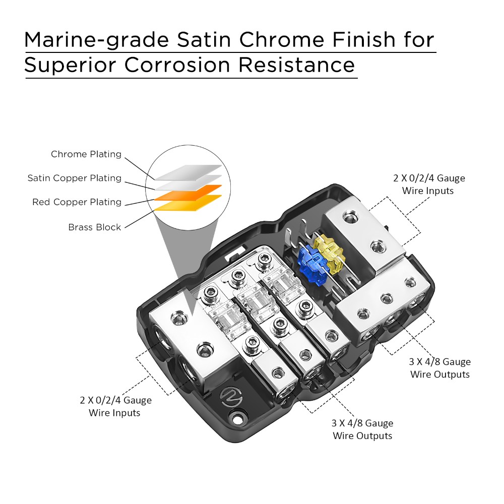 Når du kjører flere forsterkere vil du ha et tydelig fordelingspunkt som du kan stole på. MPG3 gjør jobben enkel. Du får tre sikrede matninger på plussiden og et like ryddig samlingspunkt for jord. Det gir renere kabelføring, enklere feilsøking og en strømbygning som føles gjennomtenkt fra start.