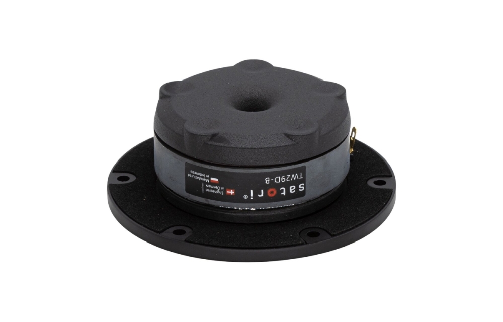 Satori TW29D-B har en resonansfri tekstildome med stor omkrets som gir jevn spredning og god integrasjon mot mellomtone og bass. Motorsystemet er metningskontrollert med en T-formet polstruktur og doble balanserte kompresjonskamre, noe som reduserer forvrengning og forbedrer lineariteten. Kobberkapsler og mekanisk avkobling i frontplaten minimerer fasevridning og resonanser for en klar og ren lyd.