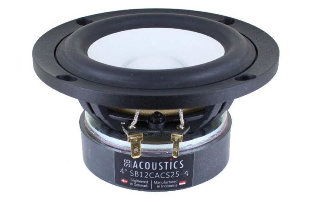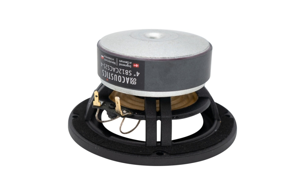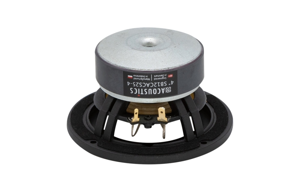 SB Acoustics SB12CACS25-4 er en 4-tommers bass/mellomtone med keramikkone og ventilert aluminiumschassis som gir stabil og detaljert lydgjengivelse med lav forvrengning. Elementet passer for kompakte høyttalerløsninger hvor tydelig mellomtone og kontrollert bass kreves, takket være effektiv kjøling og optimalisert motorstruktur for høy ytelse og pålitelighet.