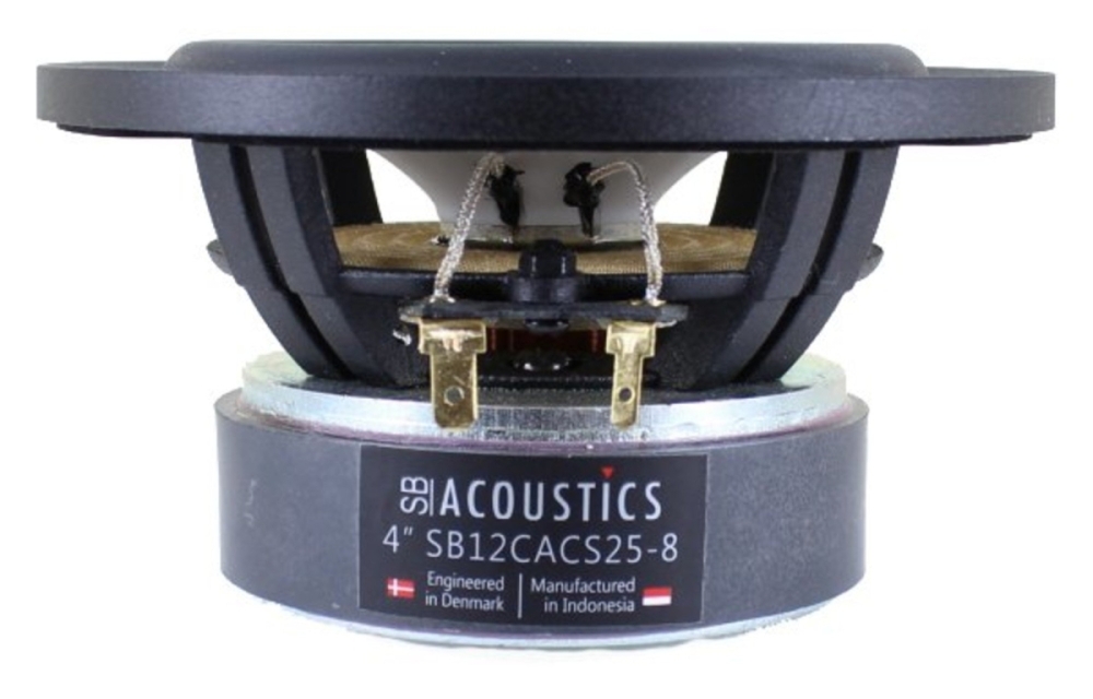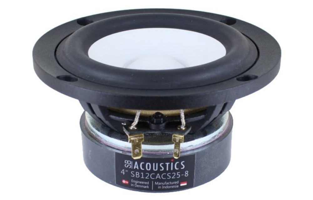 SB Acoustics SB12CACS25-8 er en 4-tommers bass/mellomtone med keramikkone og et ventilert aluminiumschassis som gir stabil konstruksjon og lav kompresjon. Elementet passer for krevende lydsystemer hvor detaljert og kraftfull gjengivelse ønskes, med lav forvrengning takket være kortslutningsring i motorsystemet og effektiv kjøling. Med 8 ohm impedans og 30 W effekttoleranse er det enkelt å integrere i både lukkede og åpne kasser.